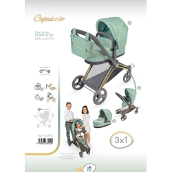 Acquista questo bellissimo ed elegante carro giocattolo, scopri la collezione più innovativa del tuo marchio preferito, con questo spettacolare Carro di Bambole Capriccio 3x1. Un carro convertibile in seggiolino, oltre che in culla, tutto ciò che serve per godere del fantastico gioco di imitazione che offre tanti benefici ai piccoli della casa.