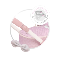 Include: 1 carro per bambole 3 in 1 della linea Sophie di colore rosa con dettagli bianchi e grigi, convertibile in passeggino o portabebè con struttura pieghevole, maniglione con altezza regolabile, ruote anteriori girevoli, tessuto imbottito, fiocchi imbottiti, dettagli ricamati, bottoni decorativi in legno naturale, ruote con rivestimento in schiuma, copertura con piccola tasca, borsa coordinata con manici in legno naturale, vassoio portaoggetti in tessuto coordinato.