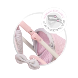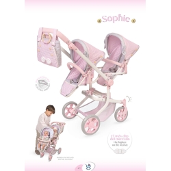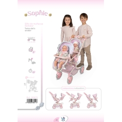 Scopri il carro gemellare più alto del mercato, con il manico a quasi un metro di altezza, struttura pieghevole e sedili con multiposizione, per goderti i tuoi bambini come hai sempre sognato. Questo spettacolare Carro per Bambole Gemellare della collezione ispiratrice Sophie è un'opportunità unica per uscire a passeggio in famiglia, sfruttando il potenziale che offre per lo sviluppo delle abilità nei più piccoli, il gioco di imitazione più completo e magico.