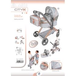 Il pack include: carrozzina per bambole Cytix grigia 3 in 1 (auto, passeggino e navicella) con telaio pieghevole, vassoio di fondo in tessuto, ruote anteriori piroettanti per un maggiore controllo, ruote silenziose rivestite in schiuma, cuffietta estensibile, cintura di sicurezza, borsa con impugnatura trolley dal disegno speciale, maniglia della navicella e altri dettagli deluxe.